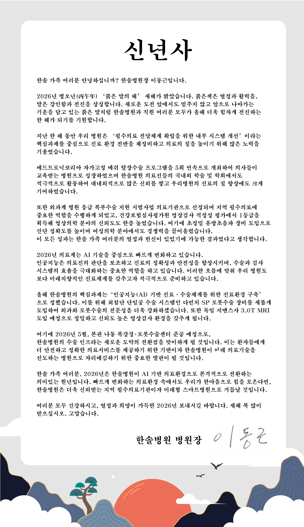 다음은 이동근 병원장님의 2026년 신년사 전문입니다.